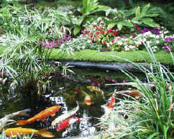 Fiberglass and resin ponds, whether pre-formed or made on-site are a controversial means of construction. Proponents vigorously promote then as fast and easy to install and relatively low cost (compared to concrete). On the downside, the negative argument; the active ingredients, their application and degradation products are toxic (!), the pre-formed ones are generally too small, shallow and not practically-shaped. They require more and careful care compared with liner, concrete and other pond-making technologies. Made-on-site fiberglass and resin projects fare little better than pre-formed; they are a nasty mess to produce and like their pre-made counterparts must be conscientiously protected from weathering and not stepped into (they fracture). Back to their saving graces; fiberglass/resin ponds can be easily moved, replaced and repaired. Especially for folks who aren't quite sure what they want, if they want it, and how long they want whatever it is, fiberglass/resin, henceforth designated "F/R" ponds may well be the most appropriate methodology. What the? Upside, Application/ Preformed F/R Ponds: Where do you become familiar with F/R possibilities? How can you find out more? Check out the hobbyist bulletins and magazines' ads; take a look inside water-garden outlets and mail order catalogs. Survey the "yellow-pages" under Fiberglass Fabricators in your area. Visit around and you'll see a multitude of preformed fiberglass/resin offered and made to order. Some are even modular! Enabling the arrangement of placing one spilling into another. Matching pre-made faux rocks, waterfalls, streams and filters can be had as well. A further elaboration are multiple piece bolt-together models that allow the owner to design their own shape. These are arranged, fastened and siliconed together before being installed. Which brings to mind an important element of their cost: Transport: If you're having a pre-formed unit shipped across, between countries, or even just across town, be aware that the dollars in transit can be considerable; possibly the largest expense of the entire enterprise. Check this out completely; drayage to the site and getting the pond(s) to where they're going in can be a major affair. They're heavy, bulky and subject to fracturing if dinged or dropped. Shape & Size: The larger and more steep-sided your pond basin(s) the more stable and easier to maintain the system will be; regardless of what it's made of. Many F/R ponds are too shallow, gradually (saucer-shape) sloped, too little and with too-small nooks and crannies to be useful. Koi and other livestock have a tendency to launch themselves out of such configurations when they get spooked or excited. Therefore look for and choose or build basins that are deep and steep and large as possible/practical. In my opinion (isn't that what all this is?) anything under two feet in depth and a thousand gallons is to be avoided for practical purposes for Koi keeping. Installation: Pre-made ponds are almost as easy as liner-types to put in. Steps to completion include: 1) Design and Engineering: What are you doing, what for, what type of filtration, where are you going to put all this stuff, what the heck, over? 2) Siting: Usual considerations; e.g. significant-other inter-rator agreement, electrical, plumbing... 3) Excavation: Slightly oversize a few inches to make room for nesting material (usually sand) and conduits. 4) Fitting and Laying of Conduits: for plumbing and electrical. 5) Backfill: with nesting material, usually some type of sand. 6) Set in Pond Basin(s): Check and adjust for level. Pack in nesting material around perimeter. A 1 1/2" schedule 40 PVC pipe and tee makes a good tool for packing as you or a friend shovel in the sand. 7) Hook up Mechanicals & Controllers: Clean and fill up, fire over, check for leaks/performance. 8) Now and only now complete the decor. Rock, plantscape, etc. as in step 7) you may discover you'll have to break, dig up, and re-do part of the install. Believe me here or your temper may possess you to convert that intended pond into a guinea-pig raceway. Grow Your Own? Custom, Made On-Site F/R Ponds: Alternatively to pre-mades, folks with expertise, gear, wholesale access to the same might consider building one of their own in-place with chopped or layered fiberglass coated with resin. Special Steps To Completion: 1) Starting after excavation, you'll lay in conduits, painstakingly tape, cloth, otherwise mask-off their ends to prevent gunking them up. 2) Either apply fiberglass with resin via chop-gun technology (a technique that involves a pumping/shooting machine that chops up fiberglass and mixes it with prepared resin mix) or hand lay and over-lay fiberglass cloth and strip within the carefully dug basin(s) and 3) Apply the resin, hardener and possibly coloring via brushes you don't like>>> Let's stop right here and talk about safety. This stuff is semi-bad-news to get on and in you. you must wear protective gear; clothing, gloves, preferably a respirator (I'm serious) when doing these applications. Avoid physical contact and fumes (good luck). Peel off and toss the clothing and gloves after use. Back to the schpeil at hand. Continue brushing the resin into the fiberglass matrix till the matrix is completely wetted. 4) Allow the entire project to 'set' an extra day beyond the resin manufacturer's suggested interval. This will vary depending on the type and quality of the resin used. Be aware there are vast differences in these. Coating and laminating resins are superior to "casting" types. If you are purchasing large quantities of resin, etc. don't be shy about haggling for a discount. The price varies like and with the cost of oil... Also, purchase extra construction supplies with the understanding that if you don't open some cans/bags you may return them for a full refund; because all the resin work should be done at one setting. Regarding Hardener: Read and follow the directions on the resin co