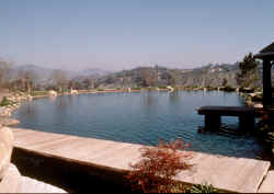 Pond liners are revolutionizing water gardening. They are a major part of state of the art technology in pond construction. Thank goodness for the advent of quality, inexpensive liners; for their use in waterproofing ponds waterfalls and streams. Though various types of liner materials have been around for decades, the latest wave of inexpensive PVC liners are responsible for bringing on the water gardening boom. Vinyl (PVC) liners are becoming much more readily available, less expensive and therefore common as: Underliners of concrete basins or as the sole water-tight membrane making up basin/s, stream/s & waterfall/s. This overview piece describes the application and installation of liners in waterscape construction and urges you to include them in your feature. History of Liner Use: Polyethylene: Starting in the late 1950's in Western Europe and the United States, a new material, polyethylene (Polythene, visqueen) started to be marketed and used for pond building. In sheets and in semi-rigid forms this material is to this day used by some people for the following reasons: It is inexpensive, readily available in several colors and thicknesses. On the downside this plastic is relatively flimsy; easily punctured, difficult to repair and fit with plumbing and takes a beating with exposure to the elements, especially sun light. "Poly" liners can be used effectively as concrete underliners or under soil to slow down degradation. Due to their short-lived-ness, polyethylene liners are less and less used as PVC liners have become more widely known and less costly. Butyl Rubber: Butyl rubber liners became more popular in the "60's", though they've been in use since the 1940's as reservoir liners. They have the longest life (50+ years by some estimates), are beautiful, and easy to install. Their major drawback is their higher cost (about two, three times PVC, but dropping). PVC; Poly Vinyl Chloride: Poly-vinyl-chloride (PVC) liners are by far the most appropriate liners. They are of wide availability and moderate price, come in several stock sizes; in colors of gray, black, green and clear in various thicknesses. They are easy to install and fit through with plumbing and electrical & last for at least ten years. Custom sizes are easily seamed together in sheets. Installation: Per your site selection, size and shape aspects of your pond allowances for drainage, run-off, utilities and maintenance needs to be provided for. Do your homework at the planning stage by reading & talking enough with people in the know until you feel comfortable with the project before purchasing and installing your liner. Building: Layout the perimeter of the excavation with a rope or hose until all parties involved are in agreement. Mark the area off with chalk or stakes & dig a hole or build an above-grade form. Measure the finished hollow of the basins and secure an adequate size liner; one with a good 6" plus overlap over all edges. Using a string or rope, laid down along the ground is useful for measuring. Make sure the liner is PVC and of at least 20 mil thickness. The overall best thickness for liner-only ponds are 32 mil Tetra brand. Smooth out rough spots, rocks, roots in the basin before laying in the liner with sand, carpet, newspaper or other material to reduce puncturing and wear. Warming the liner in the sun for a while makes it more flexible/manageable for installation. Place a garden hose in the middle of the liner and slowly fill, all the while checking the perimeter for enough overlap. While filling, smooth out large creases by folding and stretching the liner. When filled , trim off, or better still, roll and tuck the extra liner over the edge. This excess may be further secured with mortar, rock, wood or soil. Concrete Ponds and Liners: Our Construction Division, Aquatic Environments, used to employ PVC liners under concrete basins and water falls they built as a first and last line of defense against leakage. The common practice is to attach the liner to the berm (edge) made up of a perimeter of rebar and up and over the trough of the waterfall(s) and streams if present. Reinforcing mesh, welded wire are laid in and attached to the edge as well. Electrical conduit and plumbing are laid in the basin and concrete is hand-packed, pumped, shot-creted or gunited in depending of the size of the system and the finish desired. The small added cost of the liner in this operation is more than offset by the security against leak damage. Puncture, Tear Repairs: If they should occur are easily repaired by drying and cleaning the area with solvent and attaching a patch of the trim material to the area. Test your solvent for compatibility; there are some produced just for this purpose. Pieces of liner may be joined in together in a similar fashion. See particular manufacturer's instructions for their suggestions. Other Uses: PVC liners can be very useful in other ways. As pond covers, shades; and very importantly as repair membranes for systems that are leaking, cracked, have broken basins or with questionable plumbing. These can be remedied with using a liner over everything as if the basin were just a hole in the ground. Bibliography/Further Reading: Allison, James; Ponds past and present; Practical Fishkeeping, March 1987, p. 78-79. Cole, Peter. 1990. Koi; freshwater revival Barnhart, Earle. 1994. Garden ponds that work; new details con trol overflow and build reliable edges. Tropical Fish Hobbyist 3/94. Debelius, Helmut. 1985. The PVC-liner pond- homemade. Today's Aquarium- Aquarium Heute 3/85. Heritage, Bill; It'll never catch on, part II; The Water Garden Journal, Vol III, No. 1, March 1987, pp. 10-15. Orchard, Wayne & Susan Boland. 1990. Construction of a koi pond with a vinyl liner. Koi USA 3-4/90.