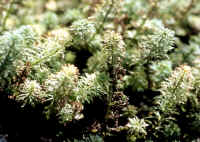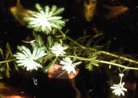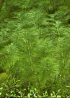 Myriophyllum: Parrotfeather, Water Milfoils The milfoils or parrot feathers, what a beautiful name, of the genus Myriophyllum ("Mere-ee-oh-fill-um") encompass species of hardy and adaptable plants for all aquaristic endeavors; cool, cold, tropical aquariums, even ponds. Most of the ones sold are grown outdoors in temperate ponds, rooted, and have flowers borne on aerial shoots? There are some hundred species worldwide, most coming from temperate zones. Some varieties are aquarium-useful, and many others are amphibious bog plants that only live partly submersed for the wet season. Still others are free-floating to rooted plants suitable for ponds. Milfoils or parrot feathers are characterized by their soft stems bearing whorls of fine feather-like leaves. Their flowers are borne on aerial shoots. If space between the aquarium top and the water's surface can be made, some portion of these plants should be encouraged to grow aerially. This for sheer beauty as well as enhanced plant metabolism.