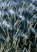 Successful pond water quality management can be approached from two different mentalities: "motor cruiser" or "sailboat" to label these philosophies for nautical types. The former embodies "mastering" the system with large pumps, mechanical filters, perhaps ultraviolet sterilizer technology, chemical filtration, testing and addition of products to "keep the water right". On the other end of the spectrum, the sailboat approach to pond-keeping involves passive countervailing strategies to maintenance. Perhaps shading the pond surface to an extent, a much larger non-pressurized biological filter area/volume, and the use of what is called "oxygenating grasses". Oxygenating grasses are a group of plant species defined by their function and utility more so than their taxonomic affinities. None are actual true grasses (family Graminae), but either as unattached or rooted, totally submersed or emergent forms, appear "grass-like" in morphology. These "grasses" provide useful functions for pondkeepers in the ways of oxygenation, use of carbon dioxide, uptake (bioaccumulation, nutrient transport) of nutrients like nitrates, phosphates that might otherwise fuel pest-algae overpopulation growth, make habitat for juvenile fishes and other beneficial life, and are decorative; beautiful in their own right. On the few downsides of their use, such plant life can become a nuisance by simple overgrowth, clogging pump impellers, plumbing intakes. If allowed to overrun a system, oxygenating grasses can actually cause too-wide swings in daily water chemistry and physics, or crowd out other purposeful livestock. These potential problems are easily prevented by regular maintenance; the removal of extra plant material. However, there are as usual some simple provisos to follow in choosing, selecting and placing these forms of life. Some species are more tropical/cold water, they all have different ranges/tolerances of aspects of water qualities such as pH, hardness, water movement, light intensity. Herein are ideas on the use of the most common varieties available and their appropriate use. Oxygenating Plants Called Grasses: The Players A list of what might be included here might be long indeed. There are hundreds of suitable plant species for the stated varied jobs above. Human nature being what it is, there are favorite genera of plants used trans-globally. The following are most often available worldwide. Anacharis/Elodea/Egeria: What's in a name? Plenty when it comes to this group of species of oxygenating grasses. Most "Anacharis" sold in the ornamental aquatics interest is Egeria densa Planchon, a tropical species not suitable for cool to seasonally cold pond use. Of the species of plants you may find labeled as such this is the largest, most "dense" Elodea, with leaves to over an inch in length, with rounded tips, in whorls of three or four. The cooler water species like Elodea canadensis Michaux 1803, have smaller leaves (about 1/3" by 1/8" that appear bent inward on their axis. These coldwater species are notorious for "falling apart" in aquariums and fish bowls (where Egeria should be used), but very appropriate for outdoor pond use.