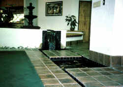 When you've decided that a fountain, reflecting pool, fish pond or waterfall is just right for your landscape, you need to answer some basic questions as to the position, orientation to the sun, and availability of utilities. Site selection involves a balance of functional and aesthetic considerations. How will the water effect look and sound from your favorite viewing places? Happily, most can be situated in such a way as to be conveniently viewed from the walkway, kitchen, living room, patio or other frequented spot. Likewise, thought must be given to the placement of equipment, if any is to be used. Often pumps, filters and related gear can be remoted to areas beyond the feature. This is advantageous to mask their appearance and noise. With a little ingenuity your fall or stream can disguise your pump noise. Site selection has to also include considerations of future maintenance. For the most part, water effects should be near the home, near a wall to reduce spray, splash, evaporation by the wind. If the pond has living things in it, placing it out of the way of the elements will cut down on temperature change and help keep the system stable. Most aquatic plants used in ponds; lilies, lotus, water lettuce, hyacinths, papyrus, horsetails, iris, and others to be covered in later offerings, do best in full sun. Therefore a southerly, open exposure is preferred for a planted water effect; whereas the less sun the better for those systems where no live plant material is to be grown. You might consider a lathe or screen shelter over your water effect as an adjunct to algae control and to keep out leaf litter. Runoff and Drainage: When building a water effect and trying to plan on keeping it clean you should think of drainage of the feature as well as rain and irrigation runoff getting into it. What will happen if the basin should dump completely? Will it flood your neighbor's property? Rain on your roof or ground should not flow into your feature, unless this is planned, as can be introduced. Most times runoff and overflow are easily controlled with the use of existing slope and drainage of your property. To drain your system, it may be advantageous to locate the water above grade near a sewer clean out, canyon, or street. Some people hook up their water feature discharge lines for cleaning and de-watering to existing irrigation to water their plants. Power: Nearness to existing electrical and water supply is important. Check with your local building codes as to set-backs, easements, and to see if you can use inexpensive cable or PVC shielded conduit to a new junction box to run your possible pump, lights, time-box. Water: For refilling, most people simply top off their water levels from time to time while watering their landscape. Alternatively, you can cut in a floating check-valve to a pressurized water source. We'll hear about these under the construction, maintenance topics. Summary: Every landscape can benefit from a well designed and built water effect. Careful, planned placement can go a long way to insure maximum utility and minimum care.