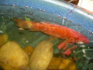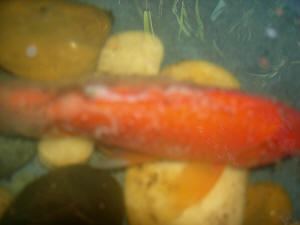 Koi ... beh., actually env. dis. 7/11/06 We have a out door pond about 700 gallon water. Our first Koi of four years old is acting strange. It seemed healthy eating a lot. It is about 20 inches in length. <A big fish in actually very little water...> The past week and a half it has behaved differently. We had a long stretch of extremely hot weather. We thought perhaps it was spawning. <Likely so> The three smaller Koi was attracted <Eng...> to the large Koi. The large Koi did a lot of swimming and flipping. Then it stopped eating and started laying on it's side. There was white gooey stringy stuff coming from the fish. I don't see any more of this substance but the fish still lays on it's side on the bottom of the pond or goes by the waterfall in shallow water and lays still. It has tried to eat, but spits it out. We feed the fish with Koi Pellets. We have added Epsom salt. We are at a loss of what to do. We have never had this happen before. <I would start a very slow "drip" replacement, change-out of water here... check your filters, backwash/clean... monitor water quality... and start planning on either a larger pond, or trading out your largest Koi. Bob Fenner> Koi Resting - 05/29/06 My mom has a pond in our backyard and she has some goldfish and 3 Koi. One Koi, the largest one, just 2 days ago started to stop swimming, and just float along on his side. He is eating fine and is otherwise acting normal. His floating action is like he is sunbathing but, he is not particular about where he floats. He just swims, and then stops on his side and sits there for maybe 30 seconds. Our pond is about 200 gallons and no other fish seems to "sunbathe" either. What may be wrong, or what could we test for to find out what is causing the problem? Thank you very much. Marc <Mmm, considering the small size of this system and the warming season, I suspect the chemical/physical changes in this bit of water are over-stressing this one fish... Could be a sign of coming trouble. Do read here: http://wetwebmedia.com/PondSubWebIndex/pdspgmaint.htm concerning what you might do. Bob Fenner> Unhappy Koi - 12/12/06 Hi guys <A and I> I tried not to have to bug you with questions, but I've been going through the forums for hours, and my eyes are going seriously fuzzy! <I prescribe Sulfa drugs... oh, wait, not for your fishes, for you... Okay, perhaps a nice Merlot> My silver Koi, whom I've had for about 3 years, is looking distinctly unhappy. He has been hiding behind a potted plant for the past 2 days and refusing to eat. When I approach him with my hand, he darts away really fast, swims right around the pond and lands right back in his hidey-hole. <... perhaps a predator...> I took him out today to have a good look at him, and I can't say that there is anything visibly wrong, but then I'm no great expert. I THOUGHT there were tiny pinprick holes on his 'forehead', but on closer inspection they seem to be too uniform to be nasties, they look more like they are part of his ...'design'? Oof, this is frustrating! <Is likely part of this fish's lateralis system...> Ok, some background. Johannesburg, South Africa. Summer rainfall. It is now pretty much mid-summer...yup, swimming pool Christmas parties! <You lucky pugs! It's so called in San Diego, I've had to put on long sleeve tee shirts!> 3 year old 500 litre concrete pond, above ground. <Oooh, this is quite small...> 4 Koi, 3 of which are the same age, I've had them for roughly 3 years, bought them when they were about 10 cm long, and are now about 25 cm- 30 cm long. The last Koi I've had for about a year, so he's smaller. (He replaced a jumper.) <Yes, happens> 2 Shubunkins, about 15 cm long. I had a third, but he developed dropsy and died, about a year ago. 3 goldfish, roughly the same. One has what look like cancerous growths, hard bulges, <Perhaps "carp pox"...> but seems happy enough. One was bought gold, but rapidly lost his colour and is now a creamy colour. <Nothing problematical there> He has spongy orangy-pink growths on the joint between his body and his front fins. (Please excuse the ignorance of fishy anatomy terms.) I was told by a supposed Koi expert that this is common in goldfish and nothing to worry about. <Likely not> 1 fantail, about 10 cm long. He too has the spongy bits on the joint, which he developed about 1 and a half years after the goldfish. I originally had another 5 baby fantails, but they apparently came sick from the shop, as 4 of them rapidly developed swim bladder disease and died within days of purchase. The 5th lasted a couple of years, until the survivor started tormenting him and seemed to nibble his fins to shreds, and then he too, died. 1 baby hatched in the tank, looks half Koi and half goldfish! <Is a definite possibilities... do "cross"> He's about 8 cm long already, he's been growing really fast. Please note that 'he' denotes either sex, as I have NO idea how to sex fish! <Can be done... with practice, close observation, seasonal changes... see WWM re> Ok, so last week I had done a 1/3 water change, which I do fairly regularly, every few weeks when the water starts looking dirty. I try to vacuum the bottom too with the end of the syphon hose, which works quite well. I added 1 kg of salt, which I don't normally do, I usually just add chlorine remover. Today, out of panic, I did a 50% water change. I also went to the pet store and they gave me a parasite medicine, 'Parasite Clear' by Pond Medic, which contains Methylene Blue. <Very safe> The container reads that it also treats fungal infections and is effective in eradicating roundworm. <Mmm, dubious re this last claim> I added 30 ml. They also recommended that I add another 1/2 kg of salt to replace what I'd removed. (By the way, they came down on me from a dizzy height for doing a 50% water change!) <Better to limit these to no more than 25% or so> I dislike adding medicines, much as I dislike taking medicines myself! <Good> My filter is a simple sponge filter which I rinse