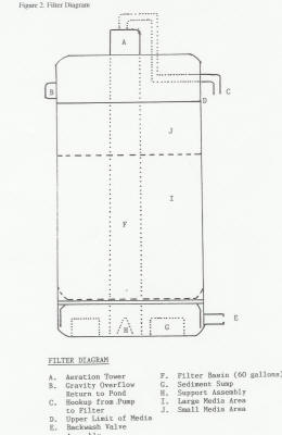 work is done, the basin/s in place. Cheers, Bob Fenner> Question about up-flow filter <Ponds> 7/2/07 Hello sir, I just finished reading your article on WetWebMedia.com about constructing up-flow filters and it was very helpful. However, I have 2 questions. In your construction diagram, you have labeled an aeration tower and a sediment sump. I don't know what these are. Is the aeration tower a piece of PVC pipe with holes drilled in it to allow water coming in from the pond to leak out into the gravel filtration bed? Or is it something else? <Is any given number of mechanisms for super-saturating the incoming water with dissolved gas... often, as you state, just a pipe with inserts in it that water is dropped, sprayed over enroute to the hypoxic stages of filtration...> Also, what is the sediment sump? <Is a chamber that allows for the settling out of suspended solids... Often a partitioned sump that incoming to-be-filtered water expands into to allow the removal of these materials to prevent their getting further... Often such traps are fitted with conical bottoms, and automated or manually operated drains to waste> If you could answer these questions I would greatly appreciate it. Thank you. James Allen Clark <Welcome. Bob Fenner> ALS 600 Biofilter 12/13/05 Hi Bob,