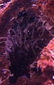 fronds seem to exude a 'gel' that may contain tiny pieces