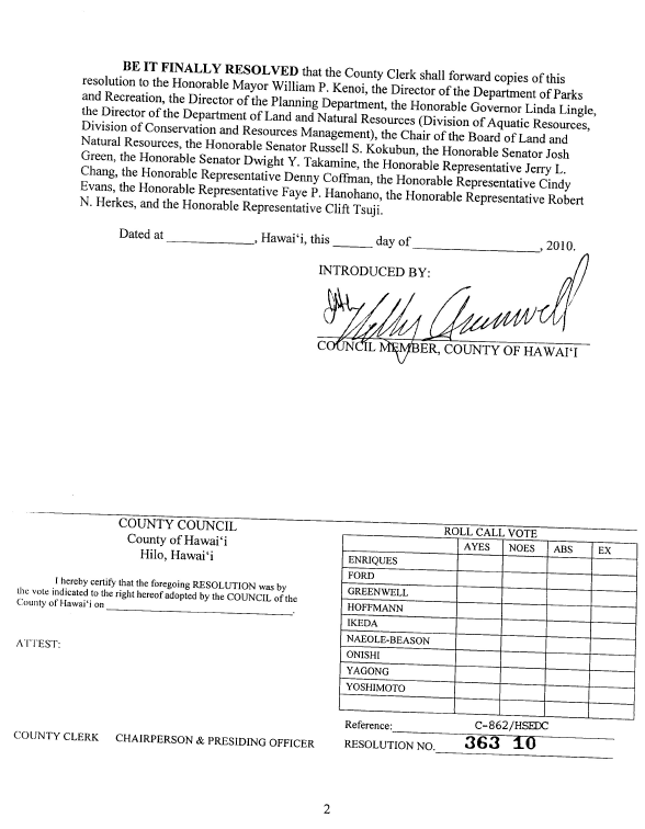 against Resolution 363-10 before 12:00 noon (Hawaii Standard