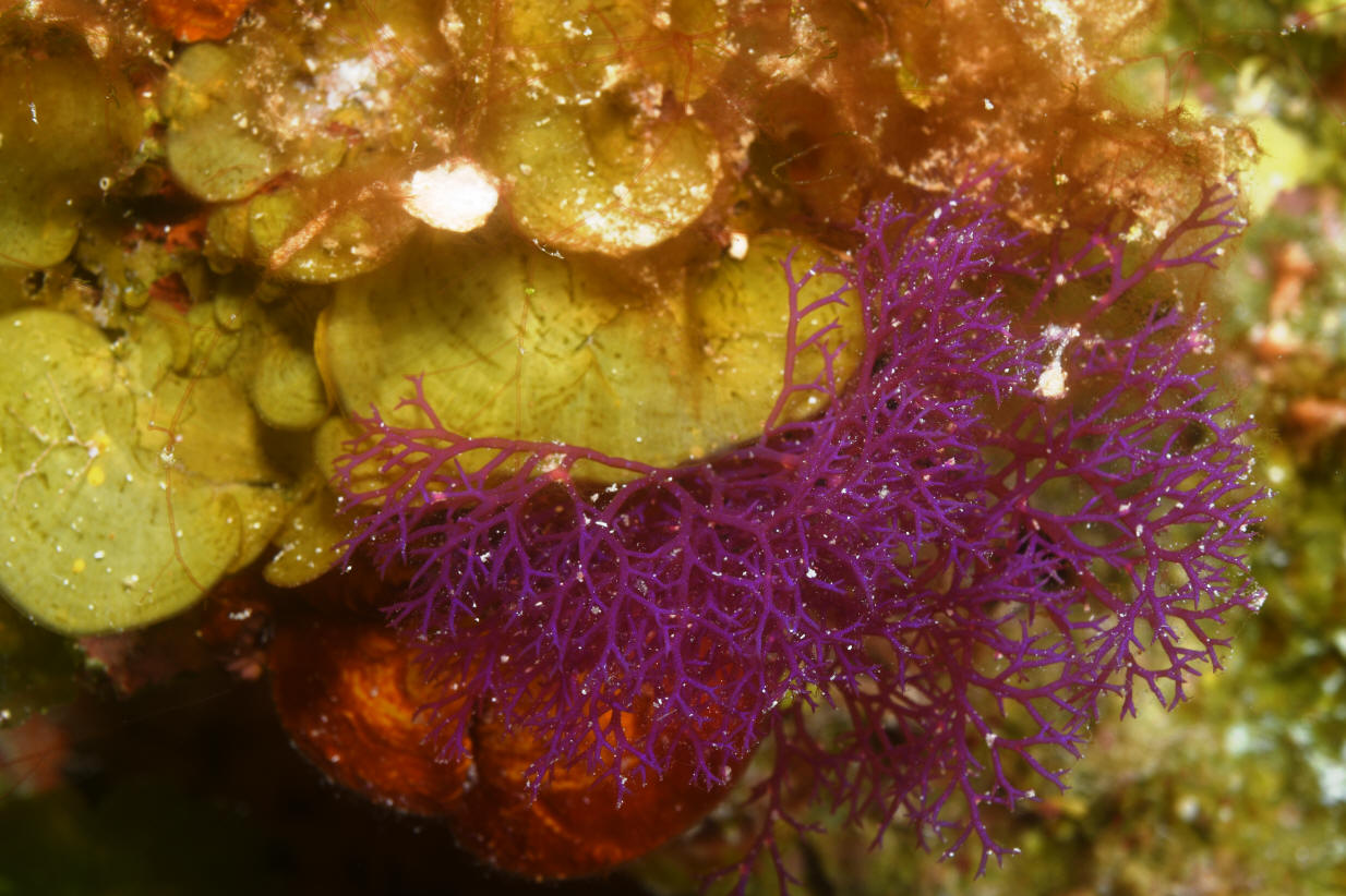 cm.) bright blue/purple algae numerously alternately branched. Each branch