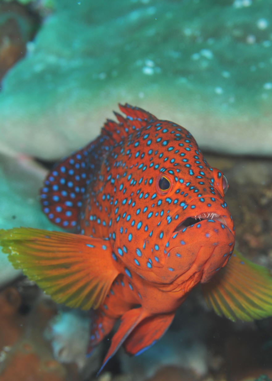Cephalopholis miniata (Forsskal 1775), the Miniata Grouper, Coral