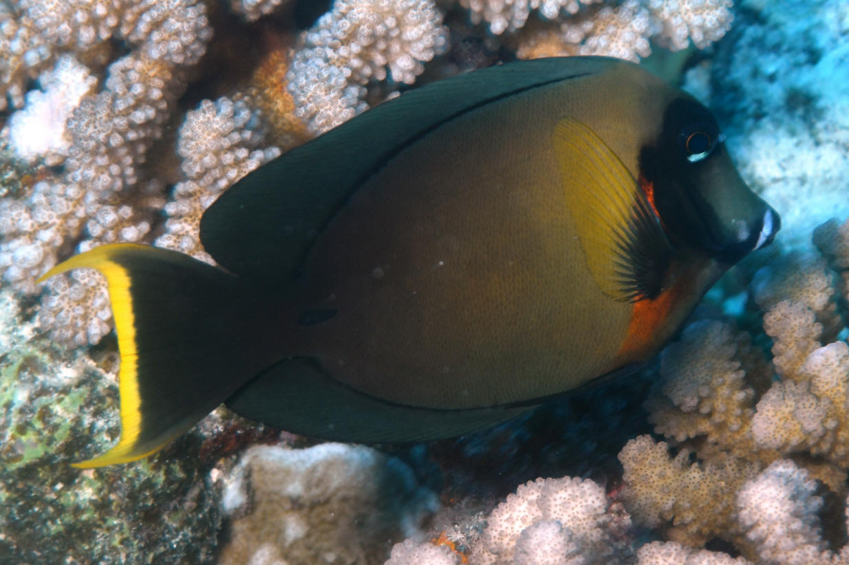 Chocolate Surgeonfish. Indo-Pacific; Seychelles to the French