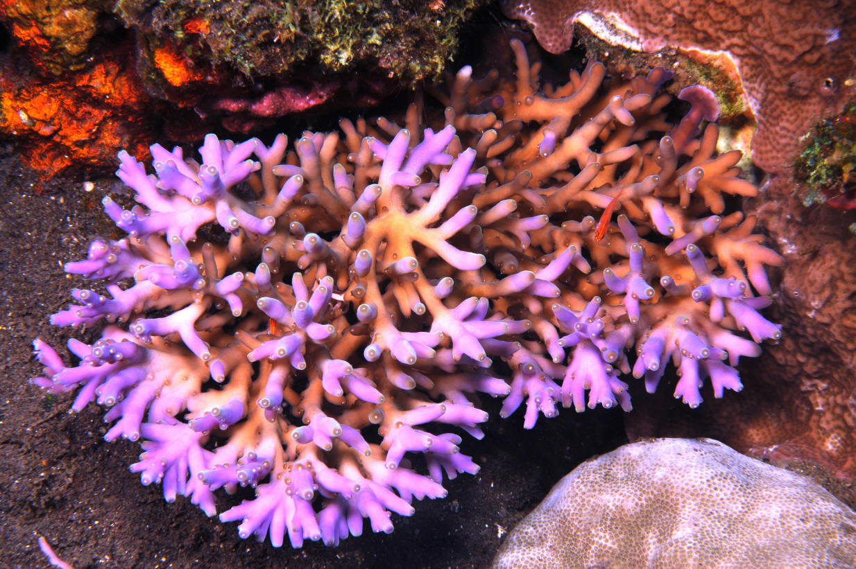 pale blue (which may photograph pink) or brown. Axial corallites are