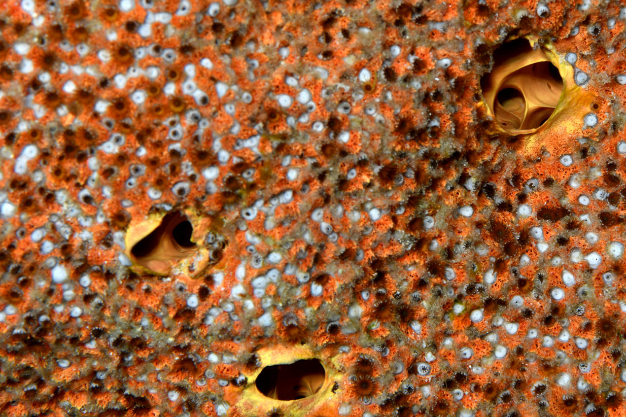 embedded in sponges... here in 2019 in Bonaire on/in a Red Boring Sponge,