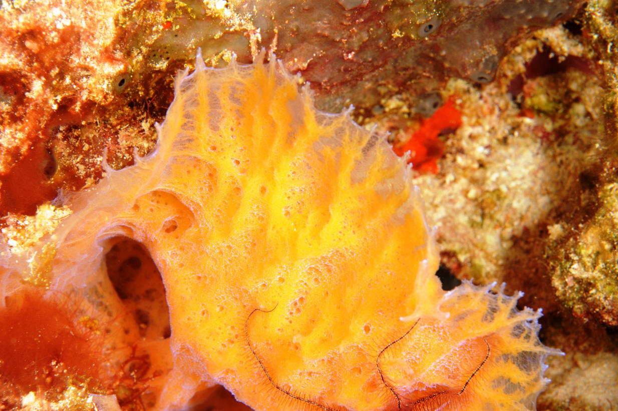 deeper water ones, supposedly dying, appear a beautiful gold. Cozumel 2014 pic. |