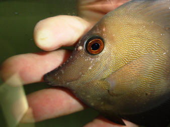 Powder Brown Tang's HLLE was: Conditions: Fish only, 30 gallon hex