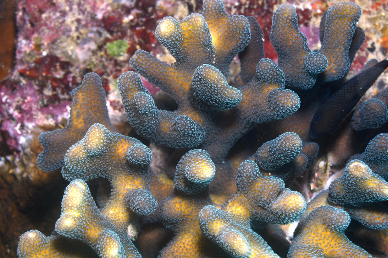 Club Coral. Thick branches with rounded ends. This genus' skeleton