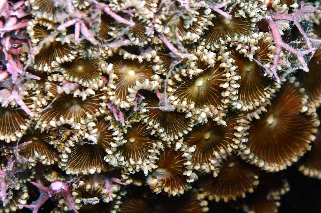 Protopalythoa sp. Polyps as flat oral discs... 1, 2, 3 cm. in