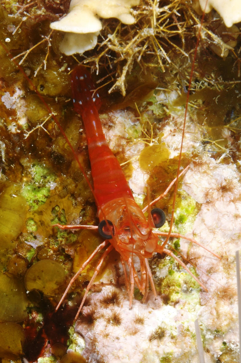 Shrimp. Large red spot dorsally; to 2". Big eyes; nocturnal. Roatan 2017 |