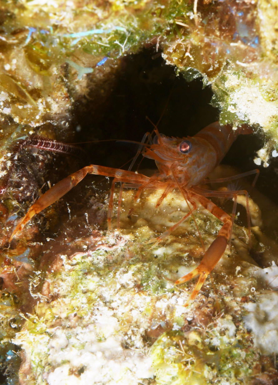 Brachycarpus biunguiculatus Two Claw Shrimp. Reddish