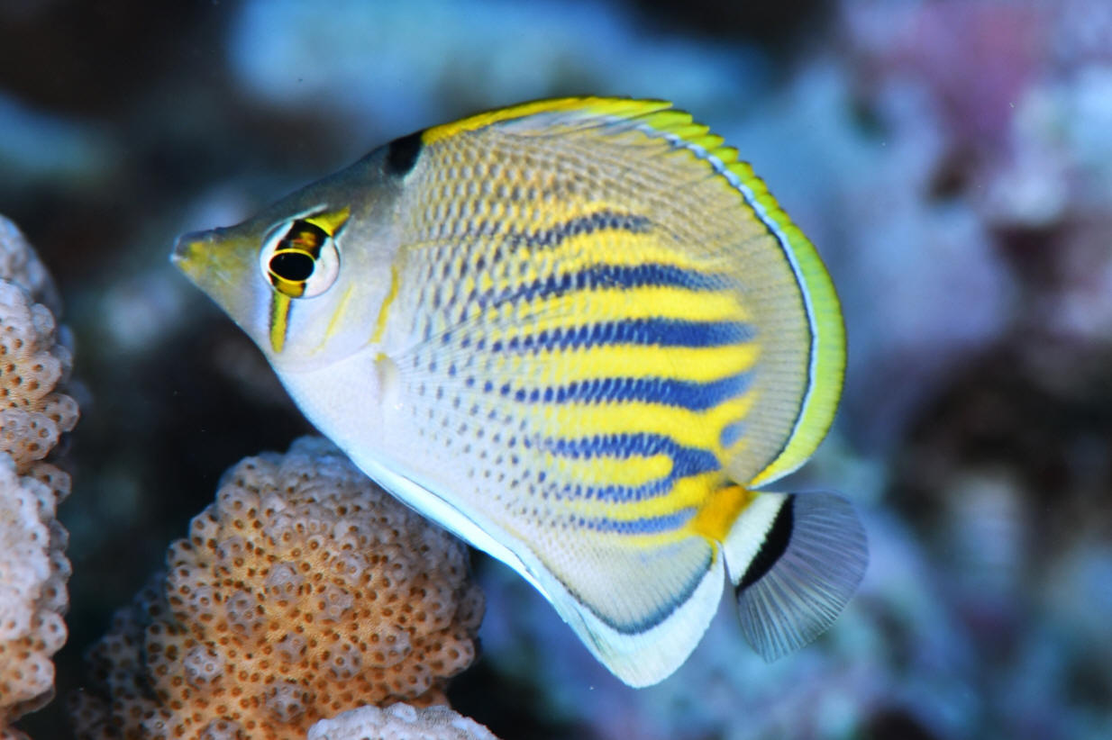 lunula (Lacepede 1803), the Raccoon Butterflyfish.