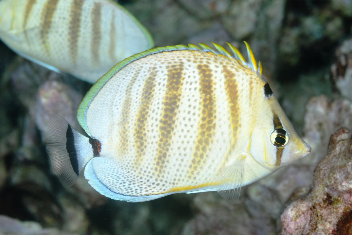Garrett 1863, the Multiband or Pebbled Butterflyfish. Confined to the