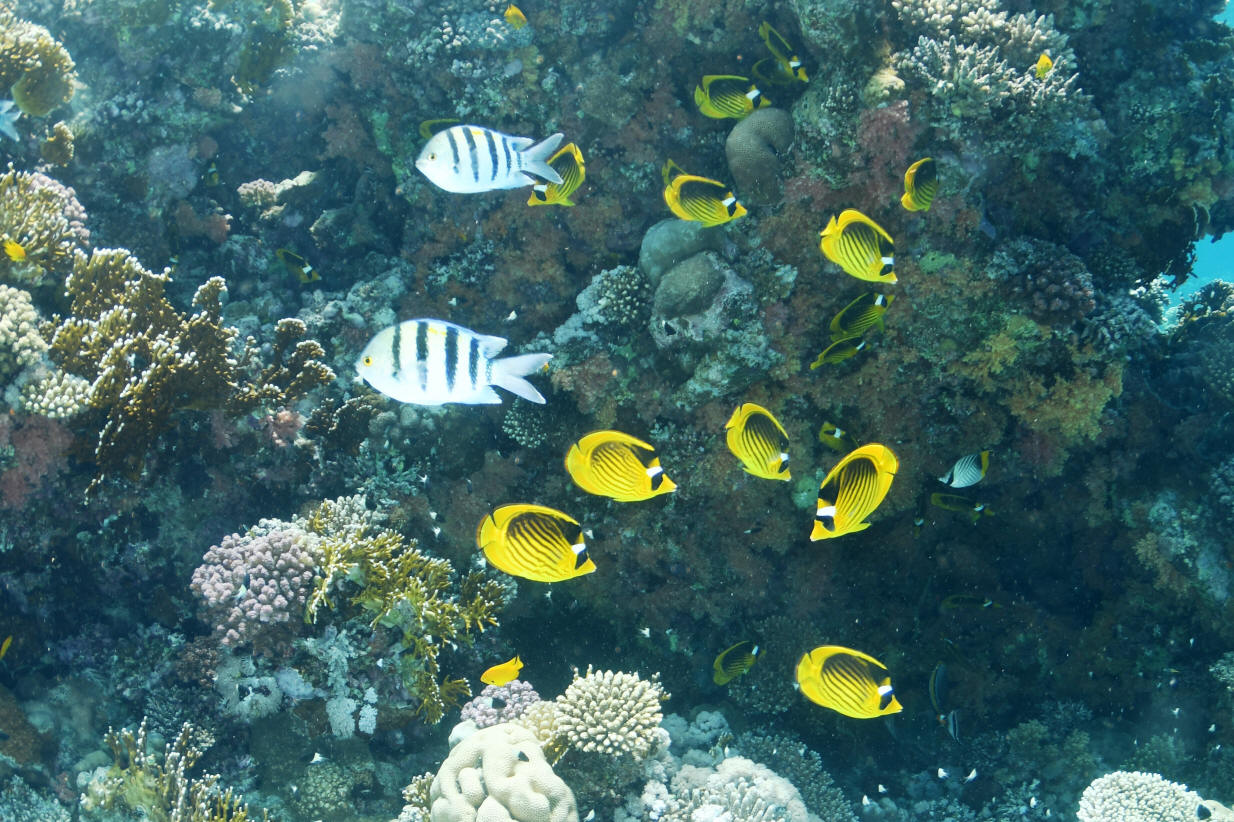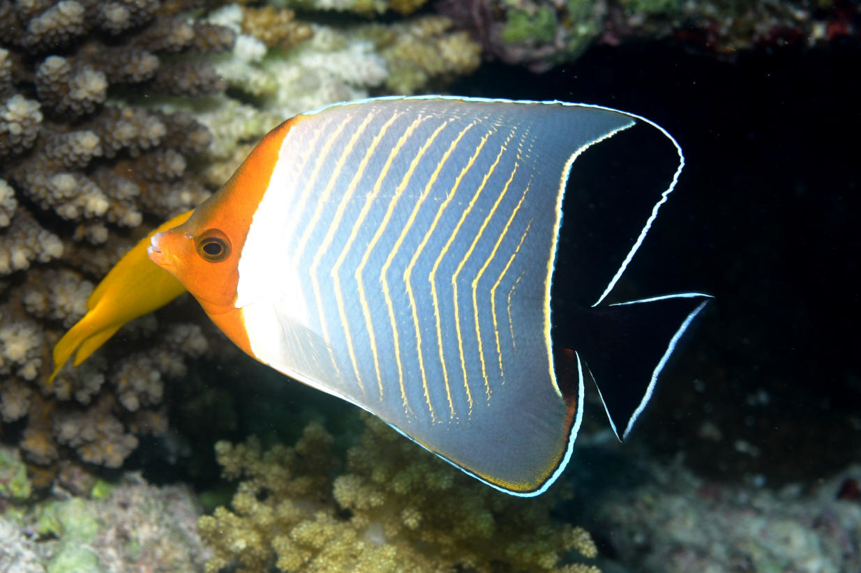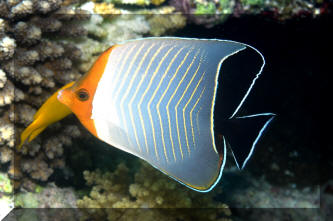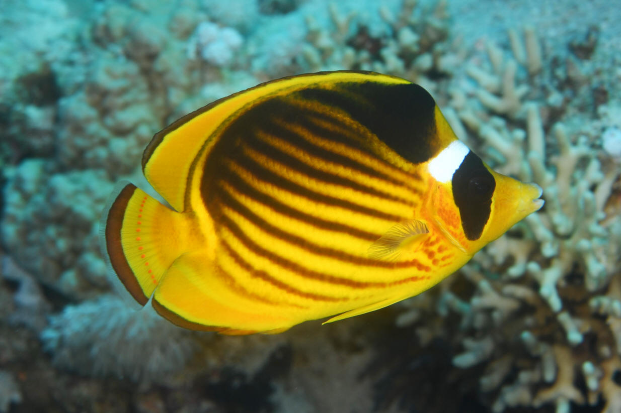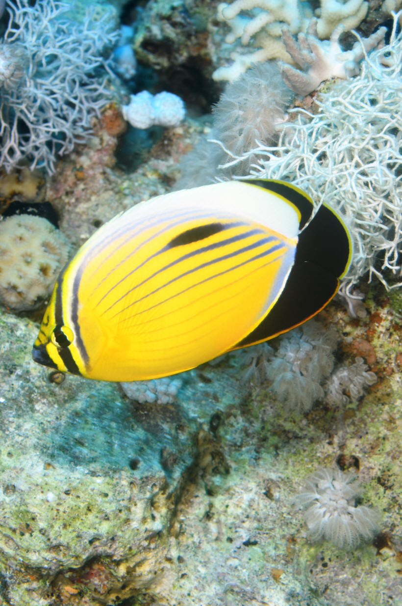 fasciatus Forsskal 1775, the Red Sea Raccoon Butterflyfish.