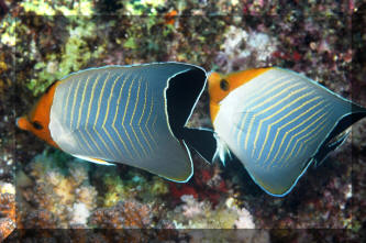 Cuvier 1831, the Golden or Blue-Mask Butterflyfish. Only found in the