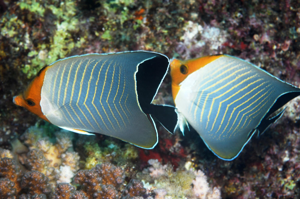 Cuvier 1831, the Masked or Orange-Face Butterflyfish. Restricted in