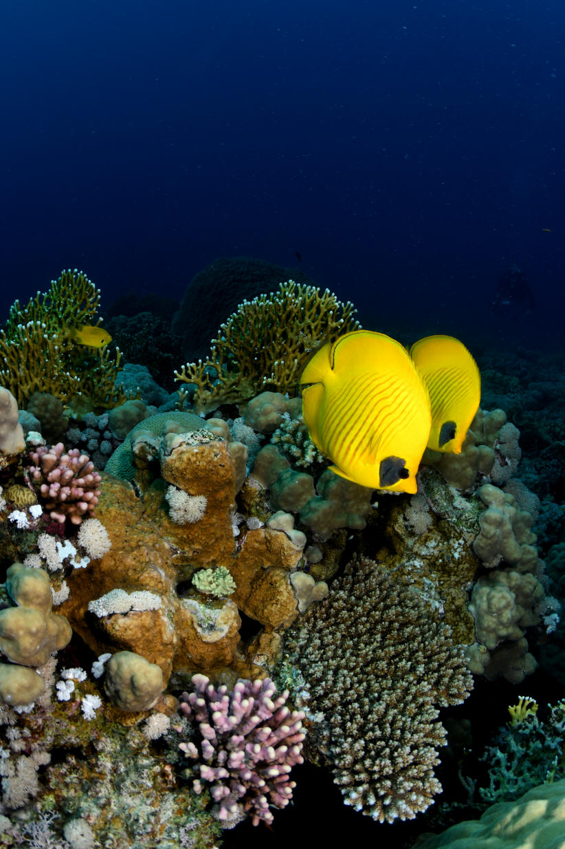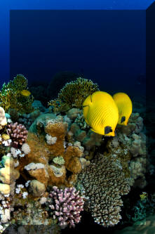 Omnivore that does eat coral polyps, soft and hard species. Red Sea