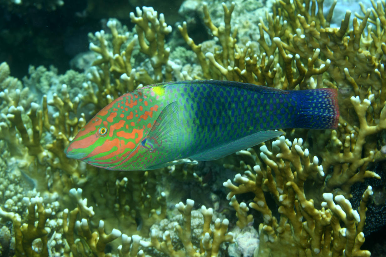 Wrasse (1) is found in the Indian Ocean and Red Sea. Males are dark