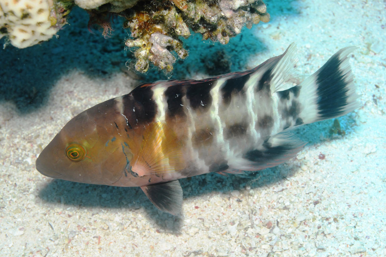 the Red Sea (2). To about 16" overall length. Adult Abudjubbe's Wrasse in the Gulf of
