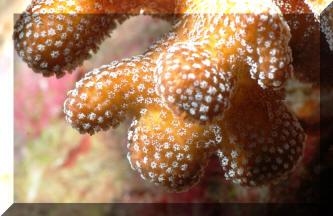 Club Coral. Thick branches with rounded ends; conspicuous corallites all over,