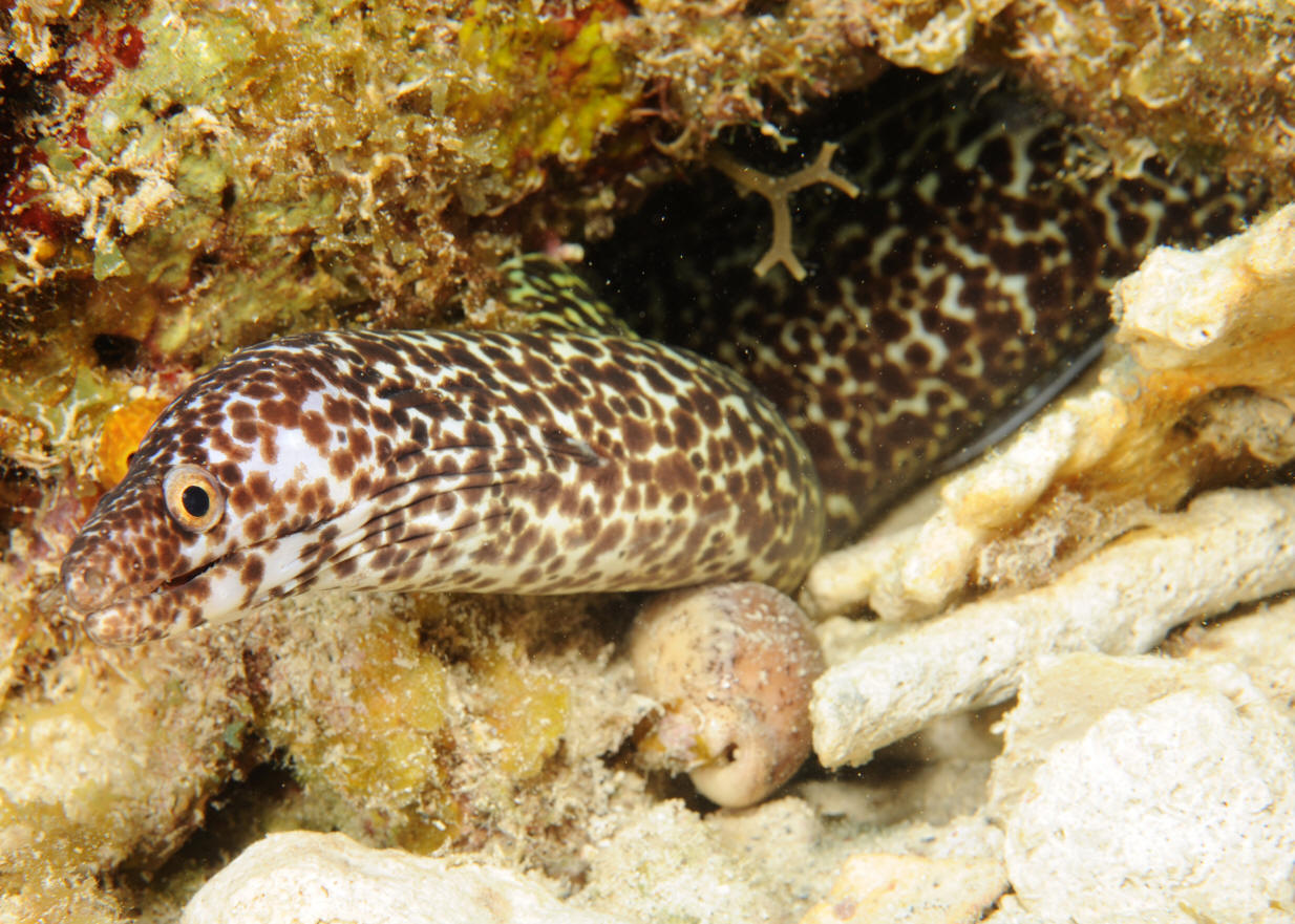 Spotted Moray Eel. Tropical eastern and western Atlantic coasts. To