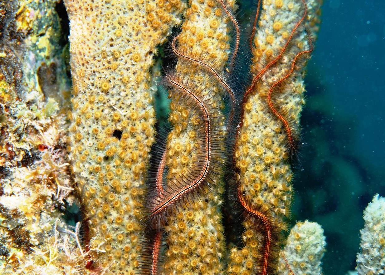 Ophiothrix suensonii, the Sponge Brittle Star. Tropical West