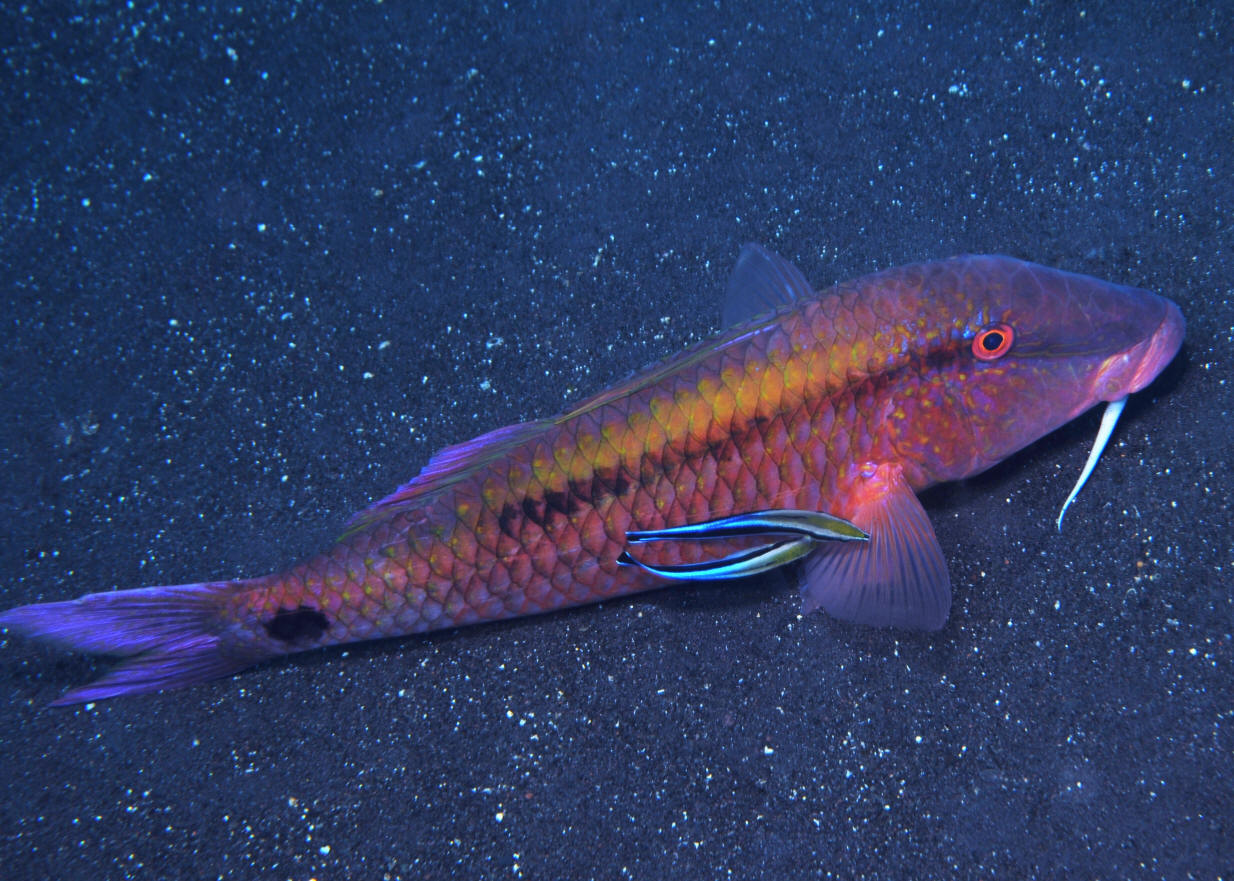 Here getting picked for parasites by a pair of Labroides dimidiatus in Bali