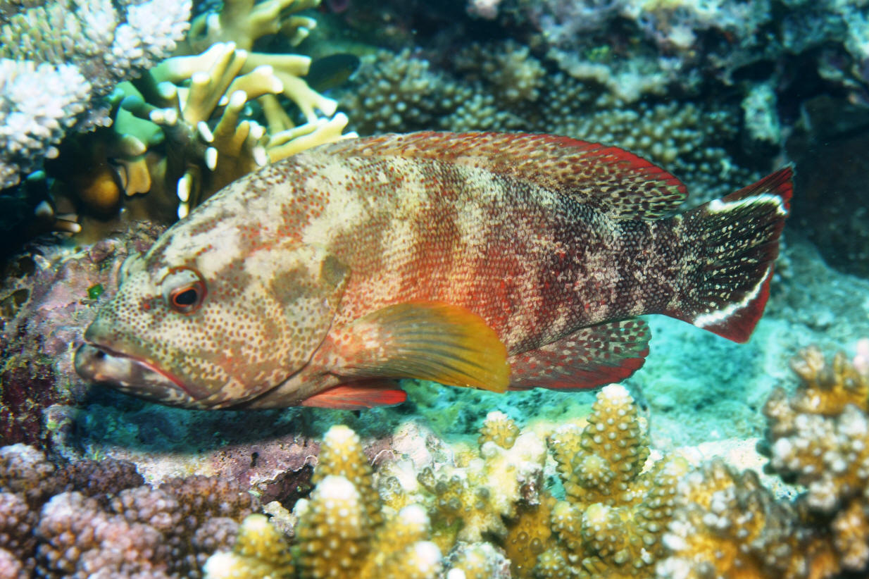 1801), the Darkfin Hind to science is the V-Tailed Grouper in the aquarium