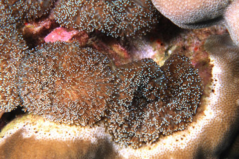 at times exclusively covering large expanses of rocky reefs. Polyps are