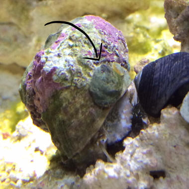 on this guy. It's a small snail, almost looks like a Stomatella. It's