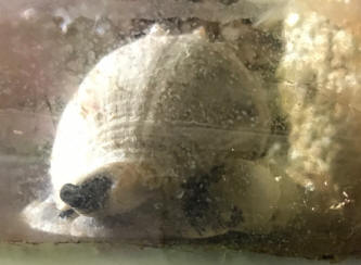 <In this sharper/closer image, looks like a snail of the Chilodontidae family,