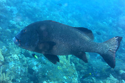 About "Freshwater Snappers": There are a few species of Lutjanids that are brackish to marine that tolerate hard, alkaline freshwater. Commonly offered/utilized in this regard are the Schoolmaster, L. apodus (above) and Mangrove Snapper (below). Both/all are more aggressive than most fishes kept in similar settings... eating most everyone's share of the food, and when larger, most everyone else... Do best kept in brackish water, with large, aggressive tankmates.