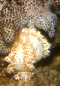 Hole in my mushroom leather I have a large mushroom leather In my 125 gallon reef. Yesterday I noticed that half way down the stalk of the coral, there is a hole about the same diameter as a quarter. The hole itself runs toward the bottom of the coral about 2 inches deep, and up the coral about 1/2 inch. Today, the coral extended its polyps and seems to be acting normally. I have several other leathers, none of which are damaged in any way. Live stock in the tank consists of; one purple tang, one yellow tang, one yellow tail blue tang, one blue box fish, one yellow Coris wrasse, one six line wrasse, three cardinals, two peppermint shrimp, one banded coral shrimp, four emerald crabs, one arrow crab, and many different types of corals. The hole is on a side of the coral that is closest to a rock. No corals are close to the leather at all (at least 8 inches away in all directions). I do have a small case of flat worms, but I did not think they would damage corals. Do you know of any animals that could have inflicted this damage? By the way, my water parameters are always perfect. >> Hmm, a mystery... Well, as you allude to... could be the bristle worms getting rambunctious... Is the hole symmetrical? not obviously a sore? This could be (but doubtful) a type of scission... a splitting of the animal, a type of asexual reproduction... My best guess, most likely culprit is the Arrow Crab... Stenorhynchus... as these get bigger, they can become trouble... I would pull it and see if the nibbling ceases. Bob Fenner who remarks that even Mithrax Crabs may nibble at soft corals. |