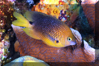 Bibliography/Further Reading: Allen, Gerald R. 1975. Damselfishes of the South Seas. TFH Publications, Neptune City, N.J. Allen, Gerald R. 1976. How many sergeant majors? Marine Aquarist 7(6):76. Allen, Gerald R. 1991. Damselfishes of the World. Aquarium Systems, Mentor, Ohio. American Society of Ichthyologists and Herpetologists, 1978. The Biology of the Damselfishes a symposium held during the 56th annual meeting of the ASIH. Rosentiel School of Mar. & Atm. Sci. U. of Miami, 1980, 145-328. Bunn, D., 1987. Spawning the Dusky Damsel. Aquarist Pondkpr. 52(1):41 Fenner, Robert. 1998. The Conscientious Marine Aquarist. Microcosm, VT. 432pp. Fenner, Robert. 1999. The indomitable damsels- Family Pomacentridae. TFH 1/99. Gronell, A.M., 1984. Look-alike damsels. TFH 32(8) 48-53. Hemdal, J., 1985. Pomacentrids of the Atlantic. Freshwater and Marine Aquarium Magazine 8(4) 48-52 Pearson, Scott. 1993. On photographing the feisty damsels. Sea Frontiers May/June 93. Stratton, Richard F. 1991. The Beau Gregory. TFH 1/91. Stratton, Richard F. 1992. The Beau Brummel damsel. TFH 7/92. |