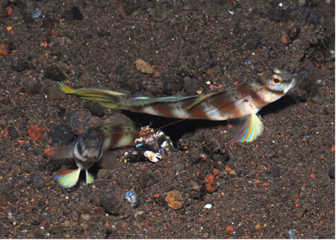 the fish acting as vigilant guard. These Alpheid Shrimps have