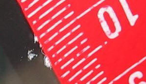 multiple chips/nicks the size of a ball-point pen tip, which is