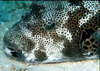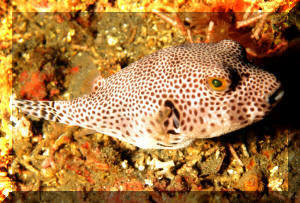 Milkspotted Puffer. Indo-Pacific. To eleven inches long. Prized