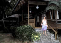 Lower three pix: Froggies Divers, located on Bunaken Island: The entrance (right on the beach), the communal restaurant, bar (beer and wine, and soft drinks), and a view of the climb to some of the cottages! |