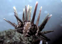 Pencil, Club Urchin. Tropical West Atlantic. Solitary, hiding by
