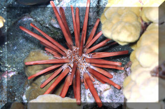 the (Red) Pencil Urchin. Indo-Pacific; Red Sea to Hawai'i.