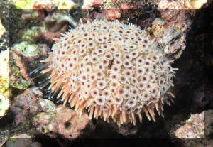 Indo-Pacific. Very toxic to touch. To 12 cm. in diameter. At right, with