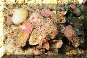 typical shells, debris stuck on with its tube-feet (in the Marquesas). |
