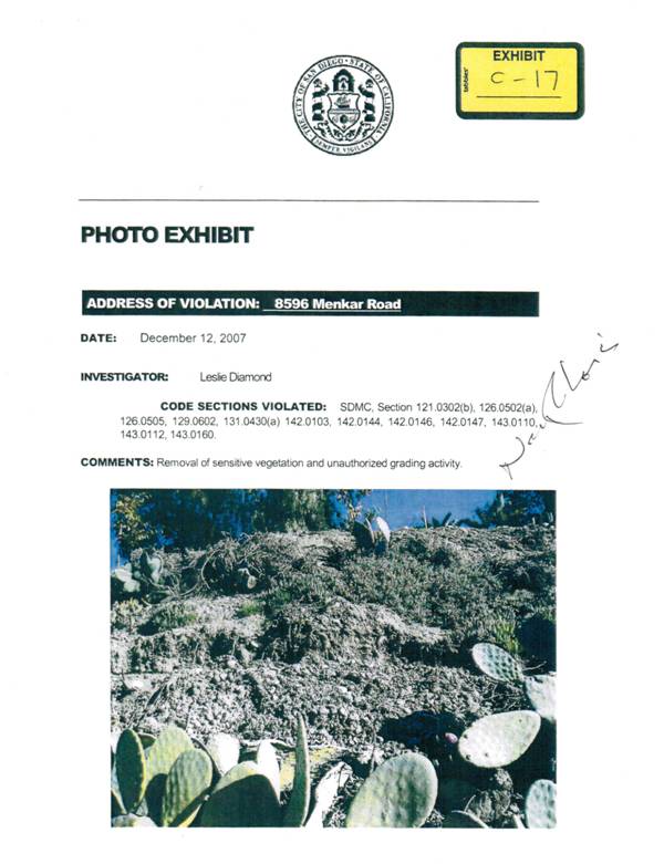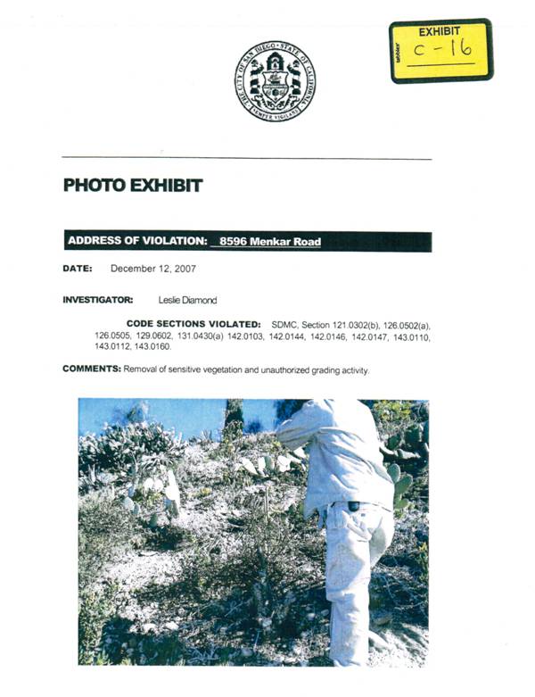 Exhibits 16 and 17. Images alleged/purported to be of 8586 hillside; actually neighbor's eastward/uphill slope (8596)...