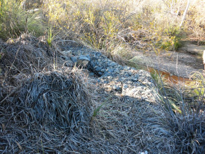 Pix of Filled in gulley/wash out on 8586 prop. and ex.s of weir dams