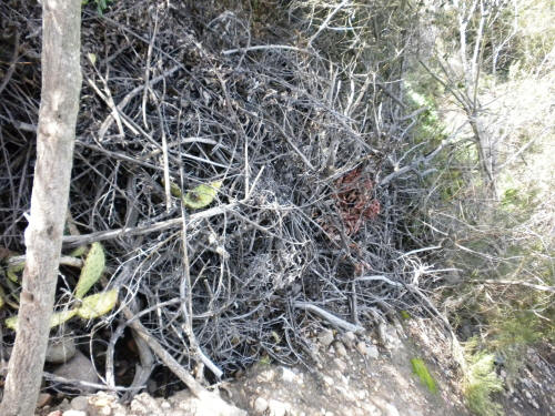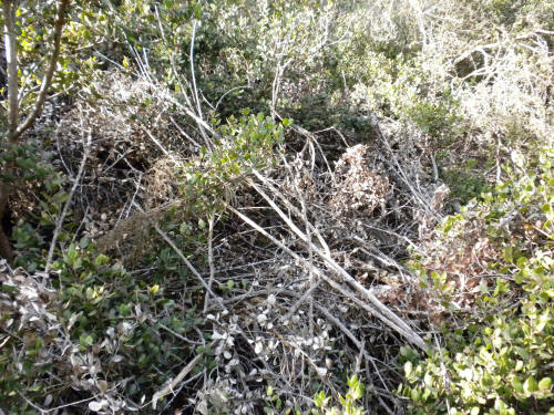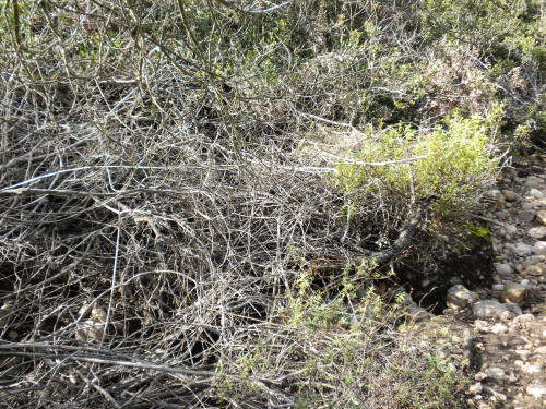 These are examples immediately behind the 8586 drainage gulley of plant material that collects from rain, mortality... This biomass gets pushed up in the gulley itself
